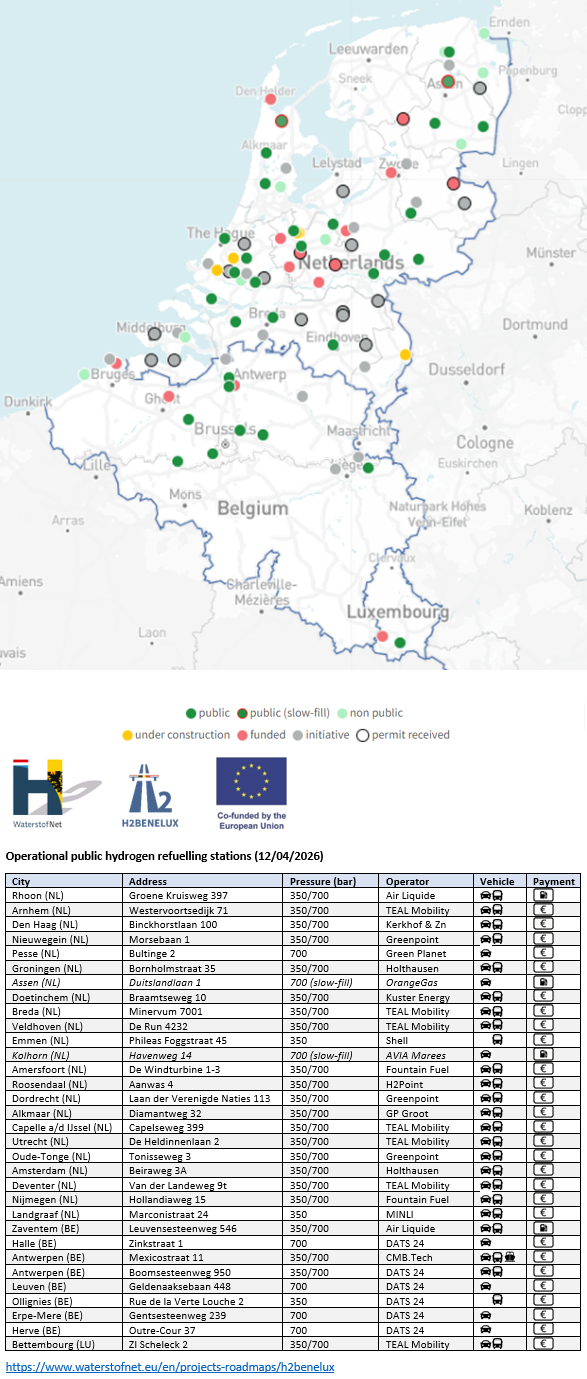 Overview hydrogen stations Benelux