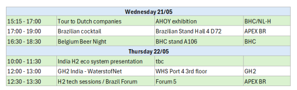 In addition to our own WIC activities, the World Hydrogen Summit features a wide range of side events worth exploring. From international networking moments to regional insights into hydrogen ecosystems, the agenda is packed with opportunities to connect and learn. In light of the existing MoU between the Belgian Hydrogen Council and GH2 India, and ongoing discussions with Brazil, we especially recommend the highlighted activities below. Use this compact overview to plan your time efficiently - and be sure to mark your calendars so you don't miss a thing!
